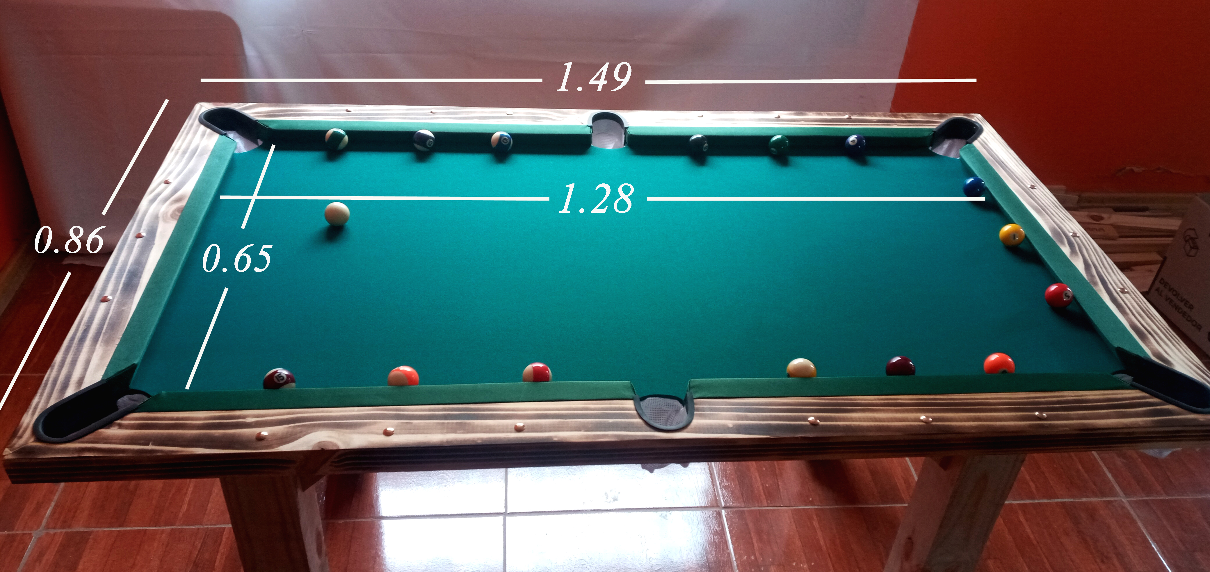 Las mesas de color que no sean verde se manchan con mucha facilidad y son más difíciles de vender, por lo tanto si el cliente desea una mesa con color rojo, azul, etc. Deberá cancelar la totalidad de la mesa antes de fabricarla.